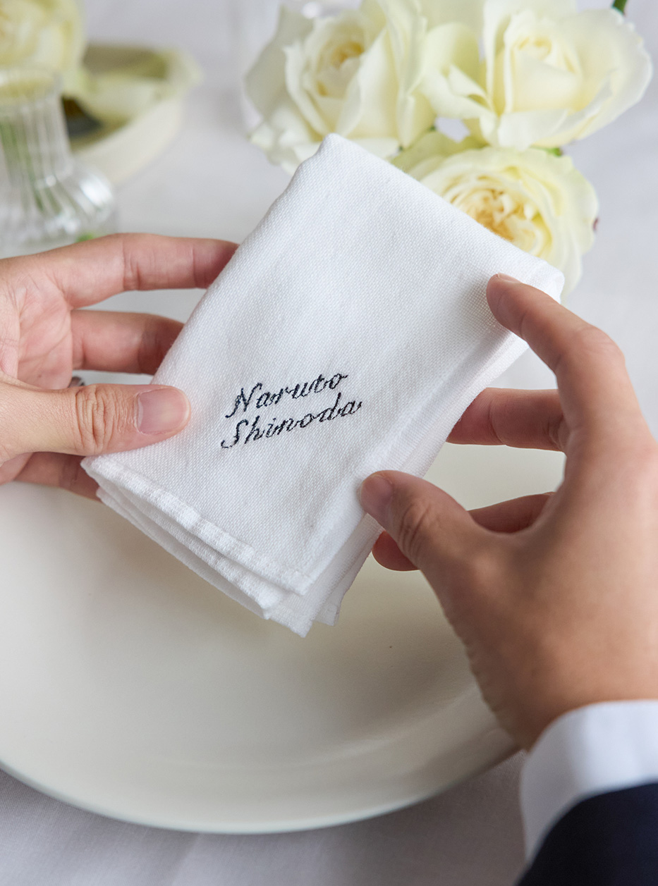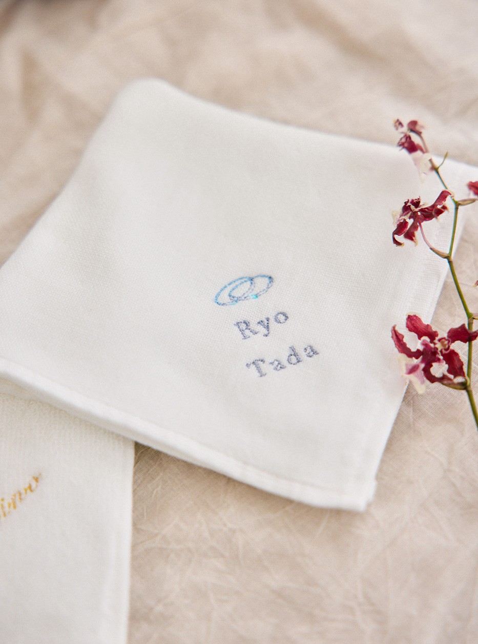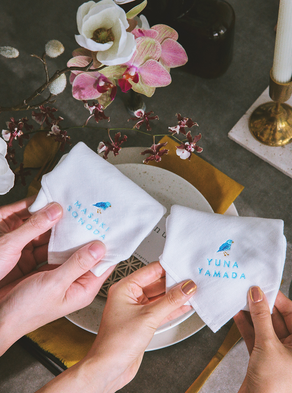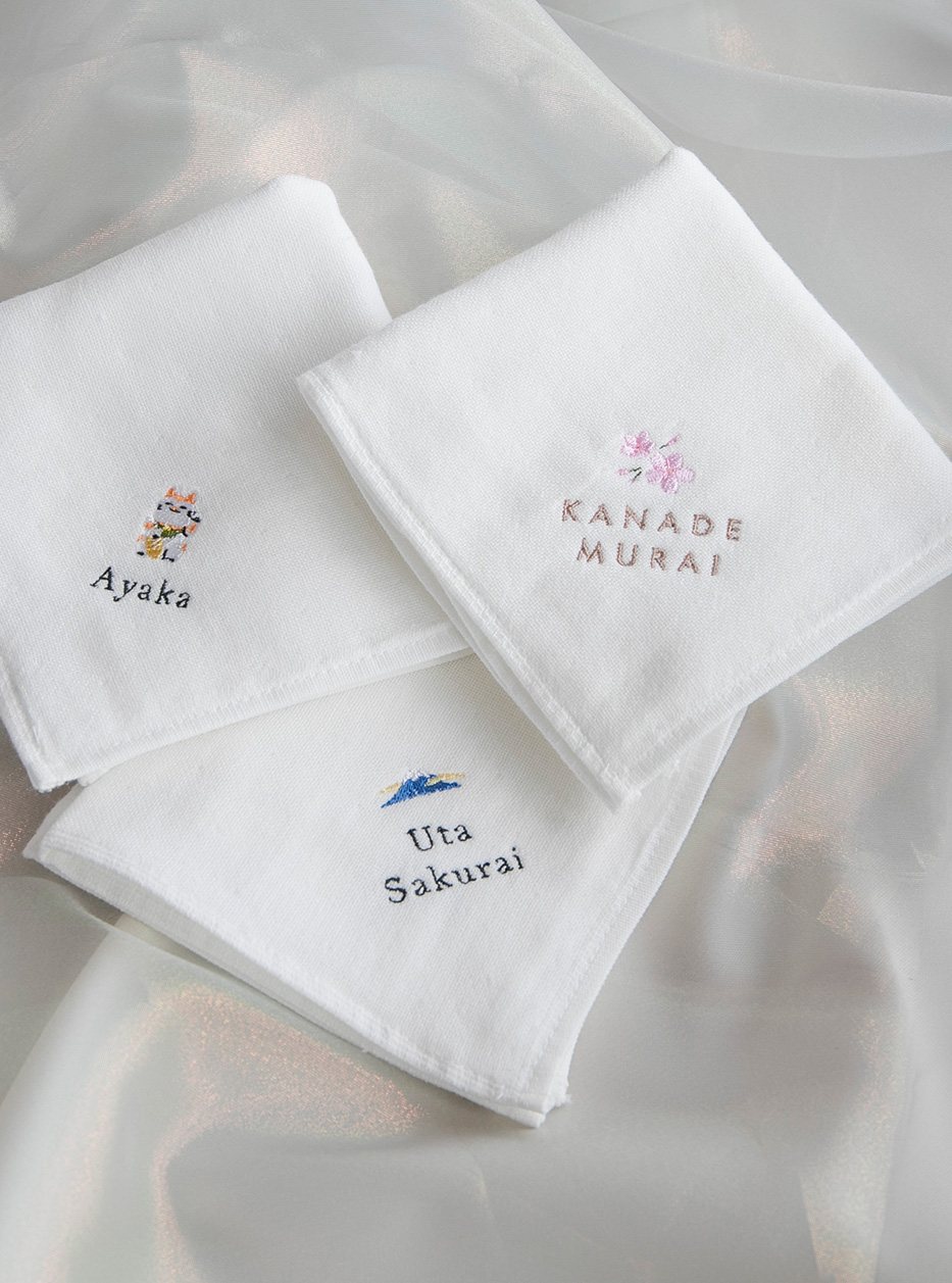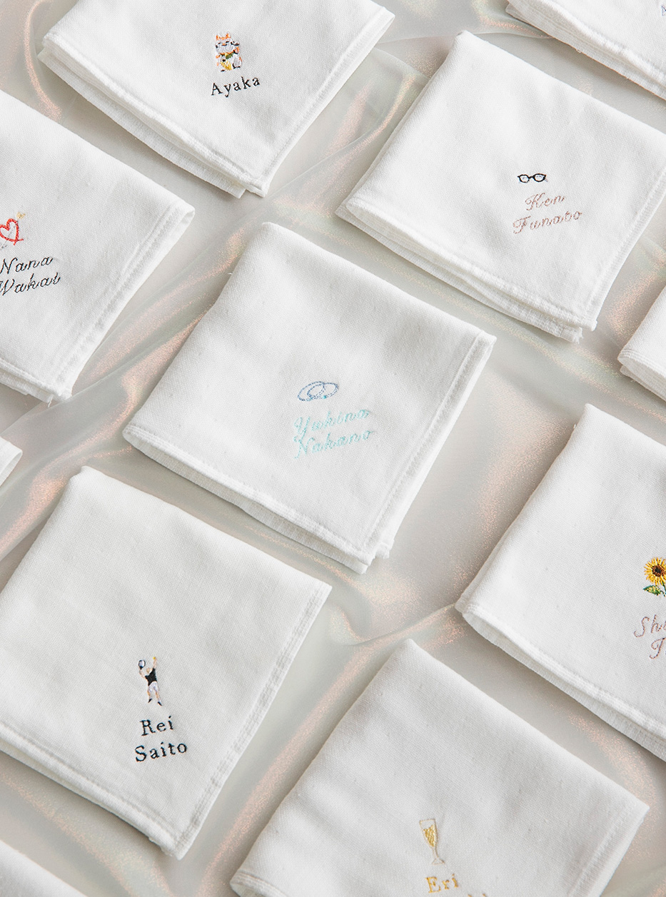 ゲストのお名前を入れて作るオリジナルハンカチ。