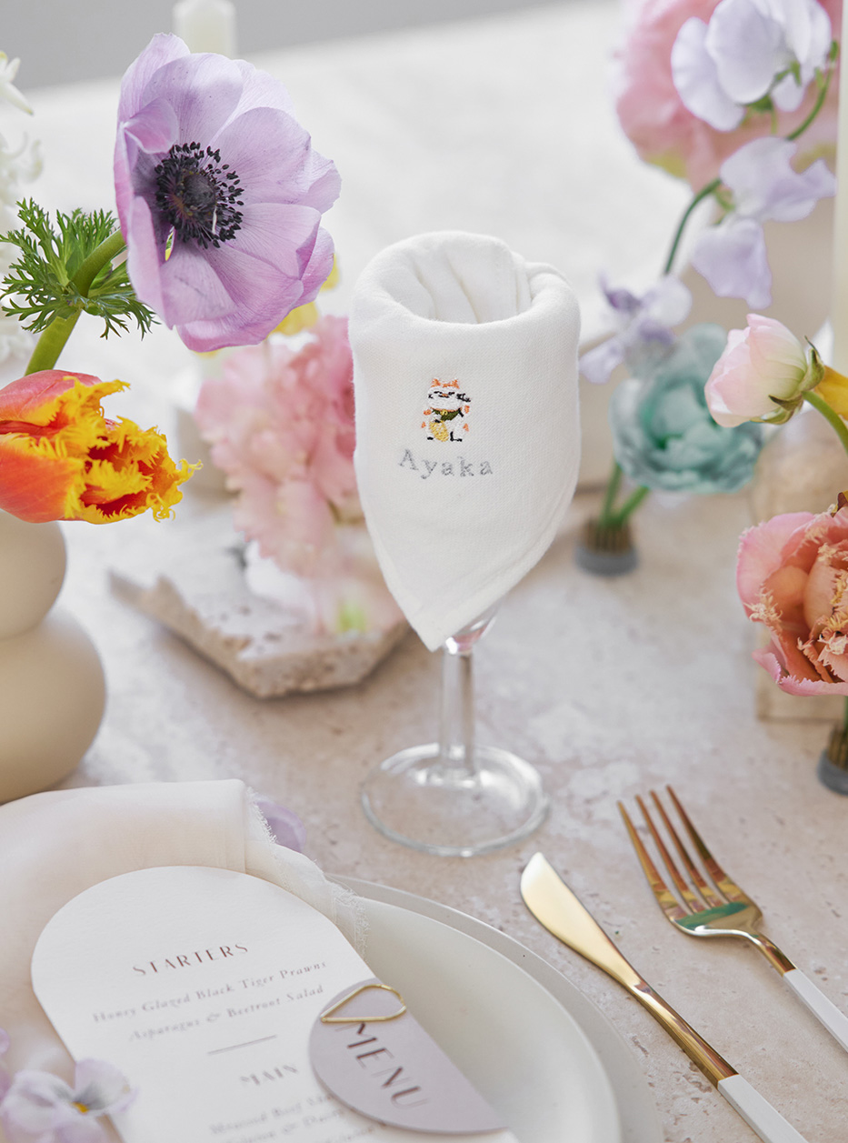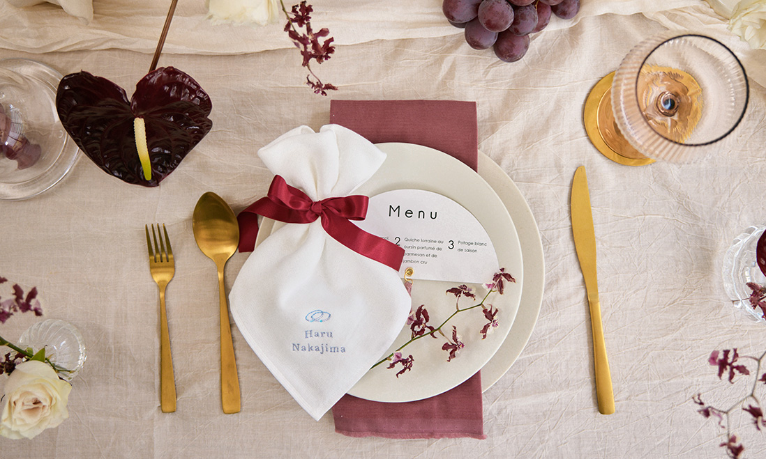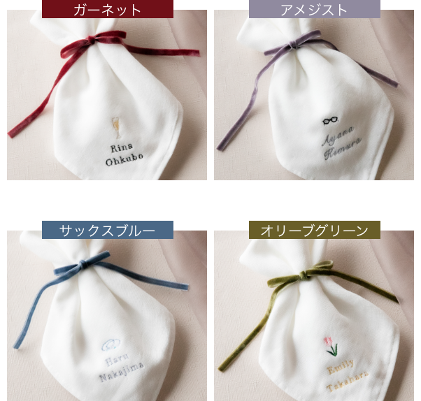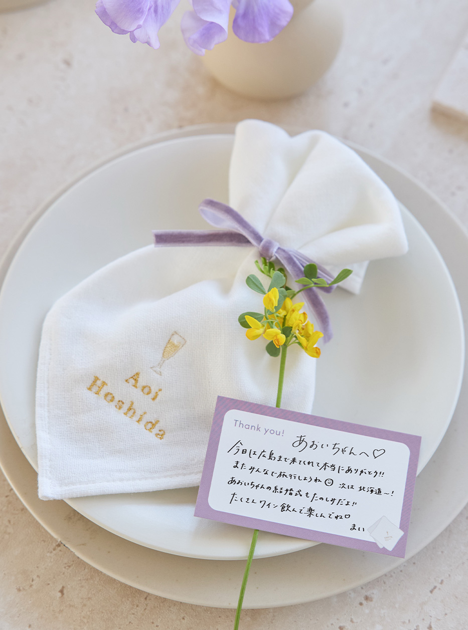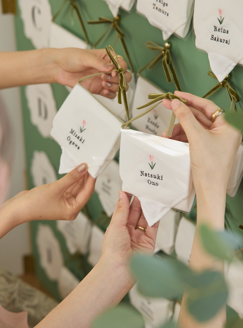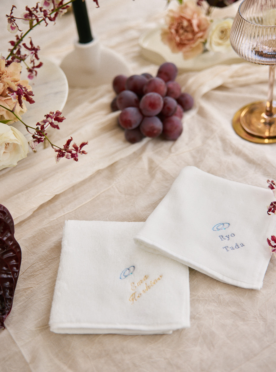 ゲストのお名前を入れて作るオリジナルハンカチ。
