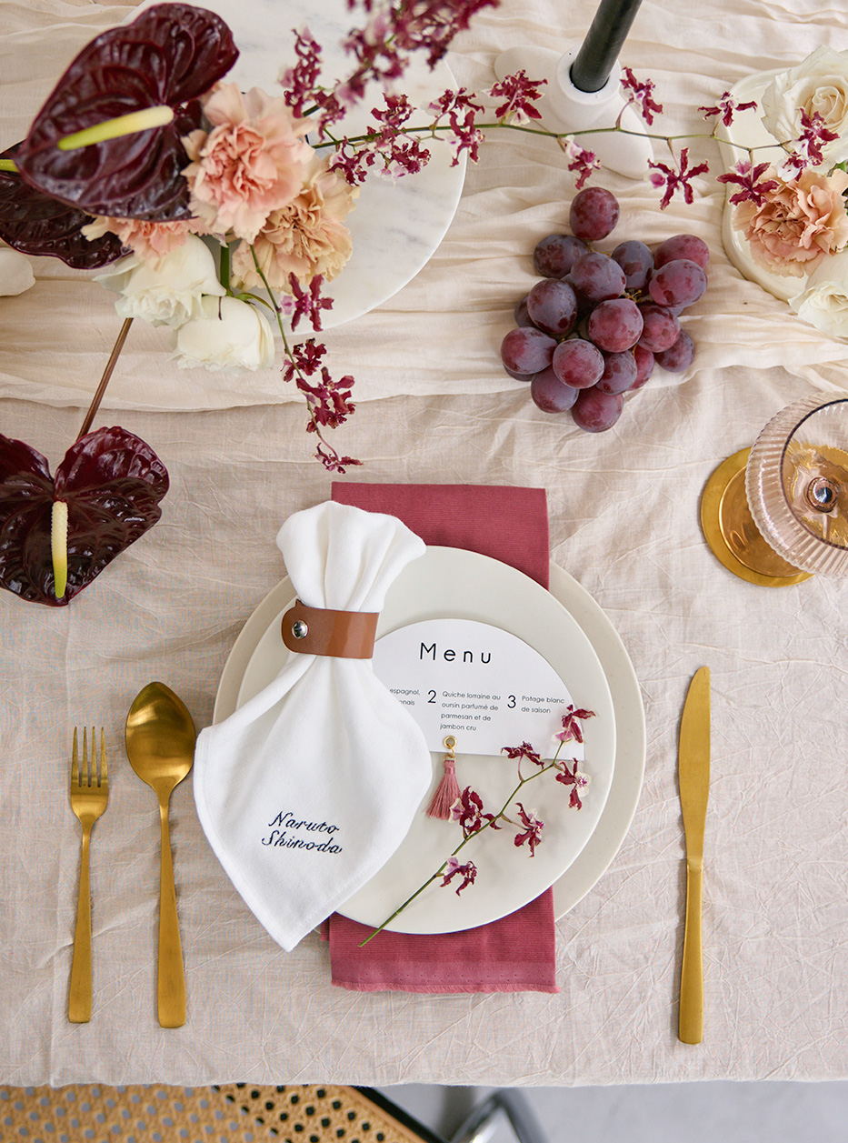 落ち着いたニュアンスカラーを厳選しました。上品なベロアの質感が、シンプルにも華やかな装いにも自然に溶け込みます。テーブル全体を美しくまとめたい方におすすめです。